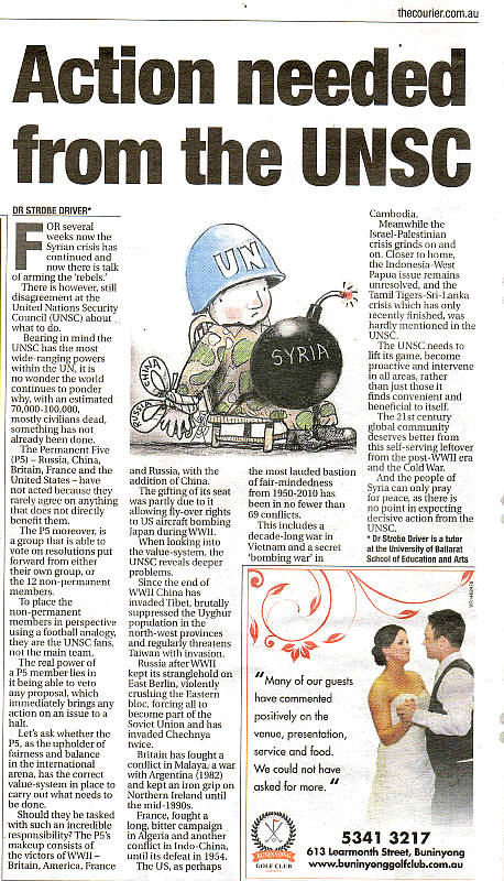 Click the scanned newspaper image for a larger readable copy or download the article here: scanned newspaper copy here or download the article here: Action Needed from the UNSC